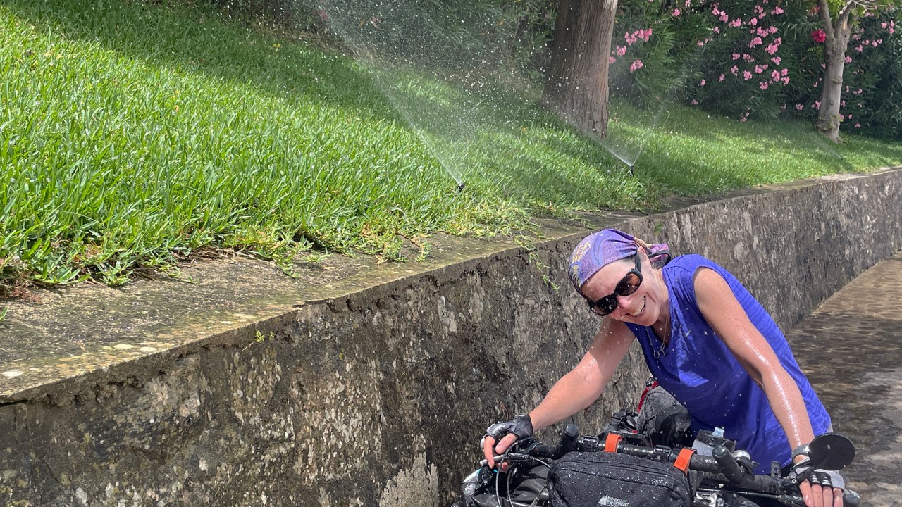 We could have stayed in that lovely apartment many more days. We did actually extend our stay by a day because it was too hot to even contemplate riding anywhere. But after three days, we had come up with a route to the coast where we would hopefully have slightly cooler temperatures. It was too hot to camp so we booked air conditioned accommodation ahead every day in a place that seemed reasonably reachable in this heat. Have I mentioned that it’s really hot? But at least we have a bit of wind. Hot wind.