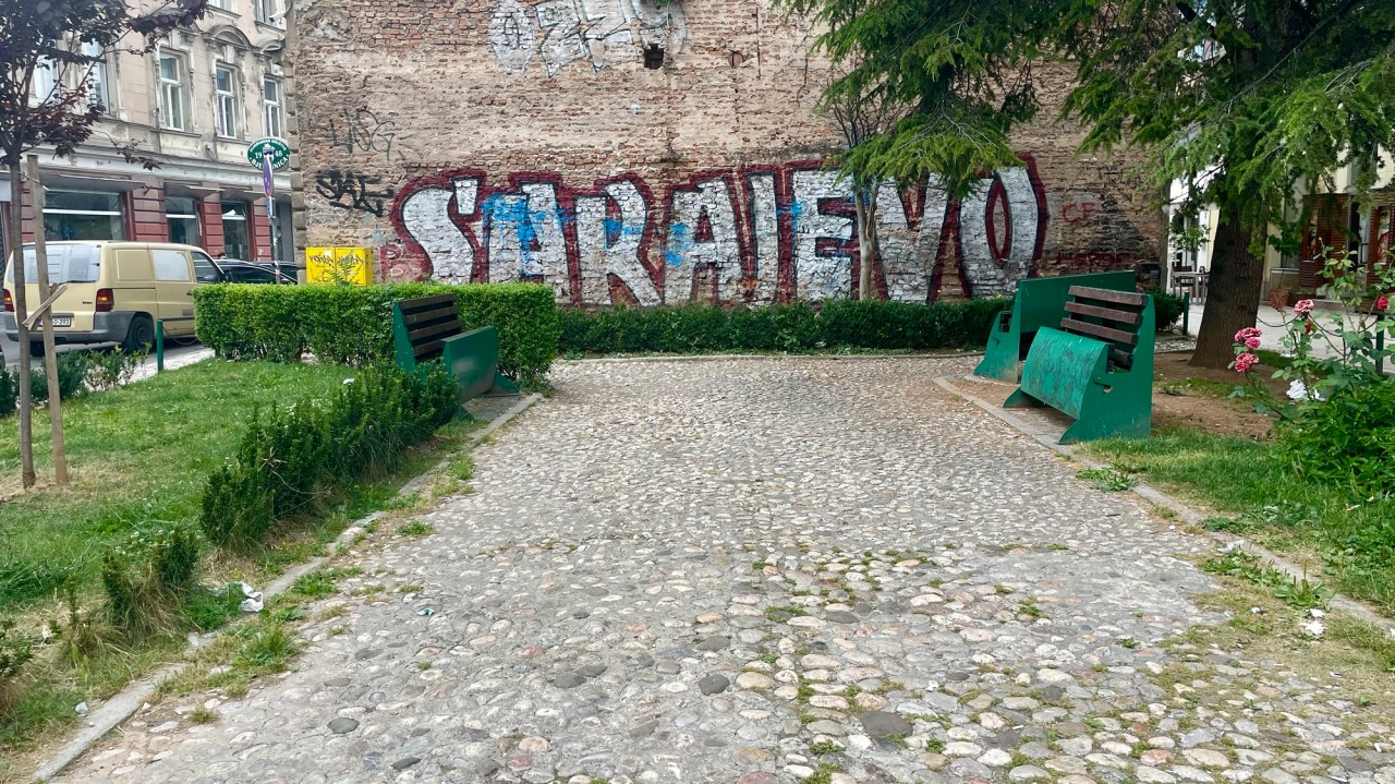 There are red roses all over Sarajevo. They are not flowers. They are scars left by mortars fired into the city during the 1425-day-long siege of Sarajevo. Later, these mortar scars were filled in with red resin to commemorate the people who died in those attacks.