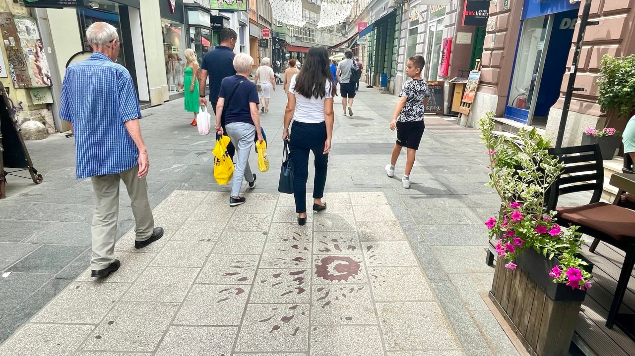 Each rose represents an attack where three or more people died. There are nearly 200 roses scattered in a roughly east-west line through Sarajevo.
