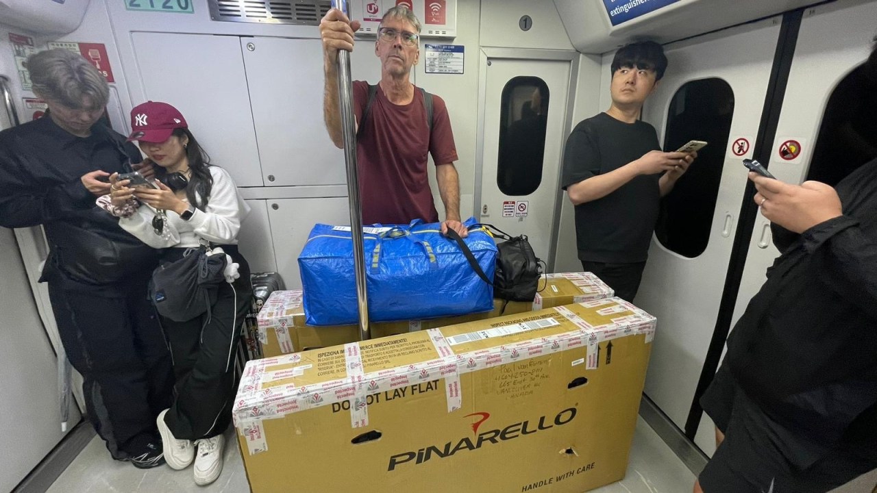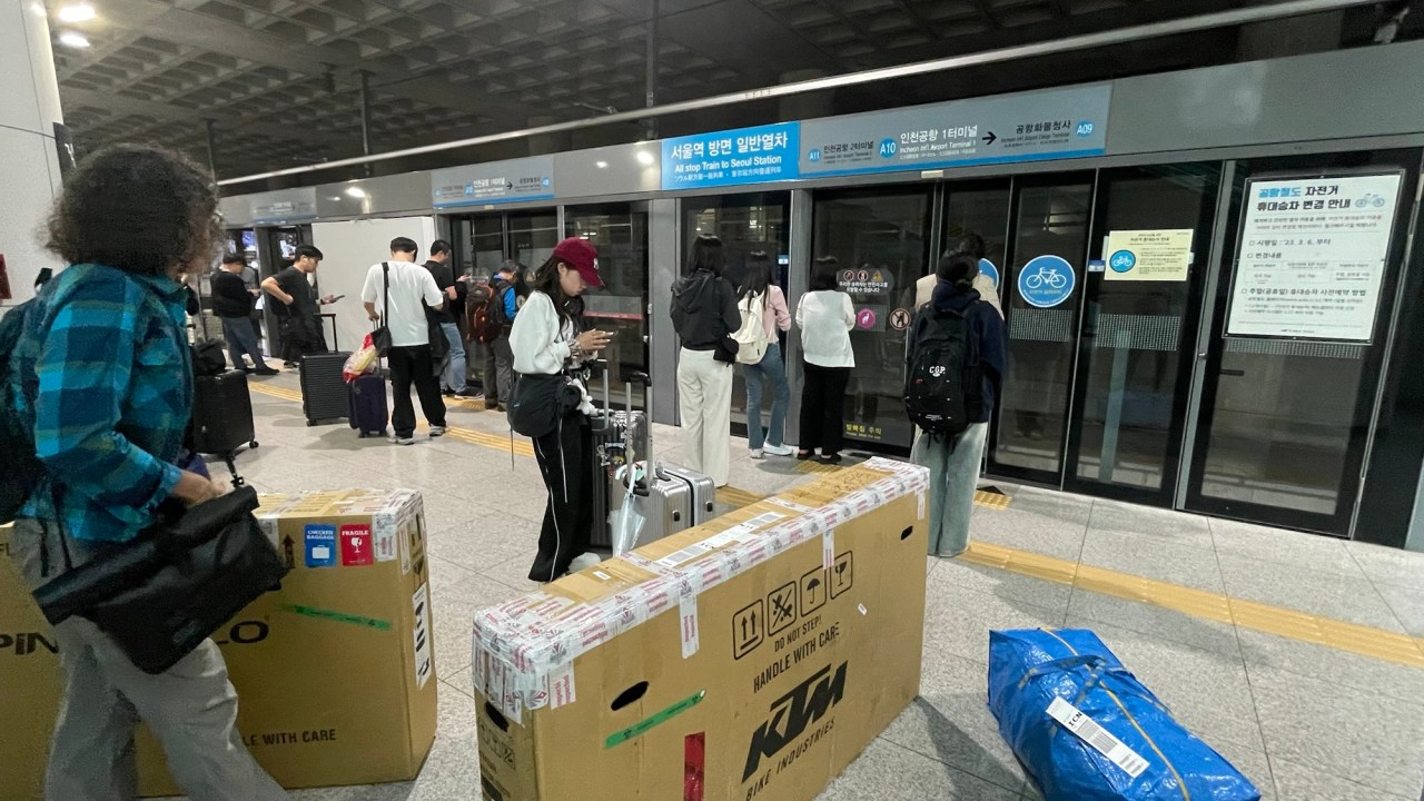 But landing at Incheon, going through passport control and collecting our luggage was probably one of the smoothest arrivals we’ve had. We were able to use the luggage trolleys to move our bikes and bags to the train fare gates and then just slide it all onto the train when it arrived.