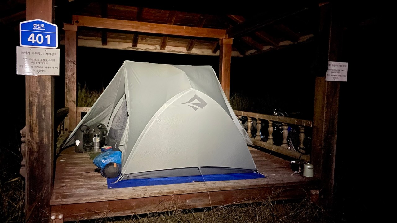 We’ve stayed in hotels because they’re ubiquitous and cheap, often cheaper than camping. Campgrounds charge 40,000 to 50,000 KRW, $40 to $50, and hotels are the same price and they are well-appointed with good en-suite bathrooms and always have coffee, tea, water in the fridge and a variety of male and female toiletries, including toothbrushes. One had a massage chair and another even had a steam closet to clean and steam your clothes.
