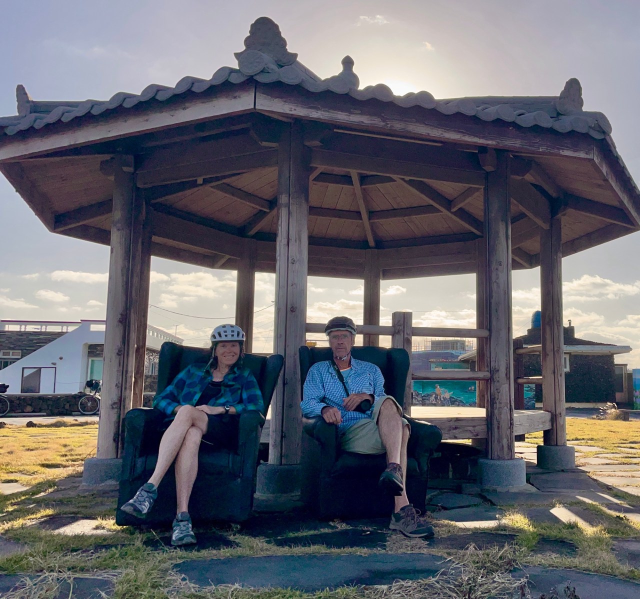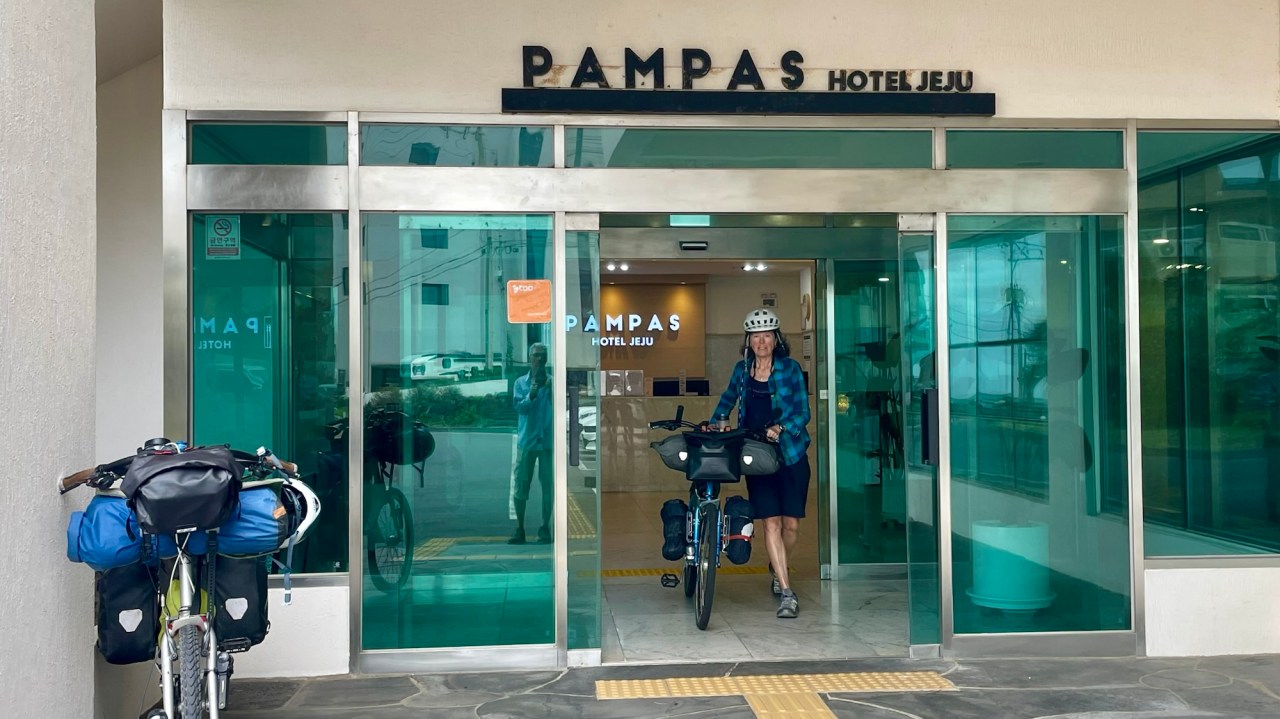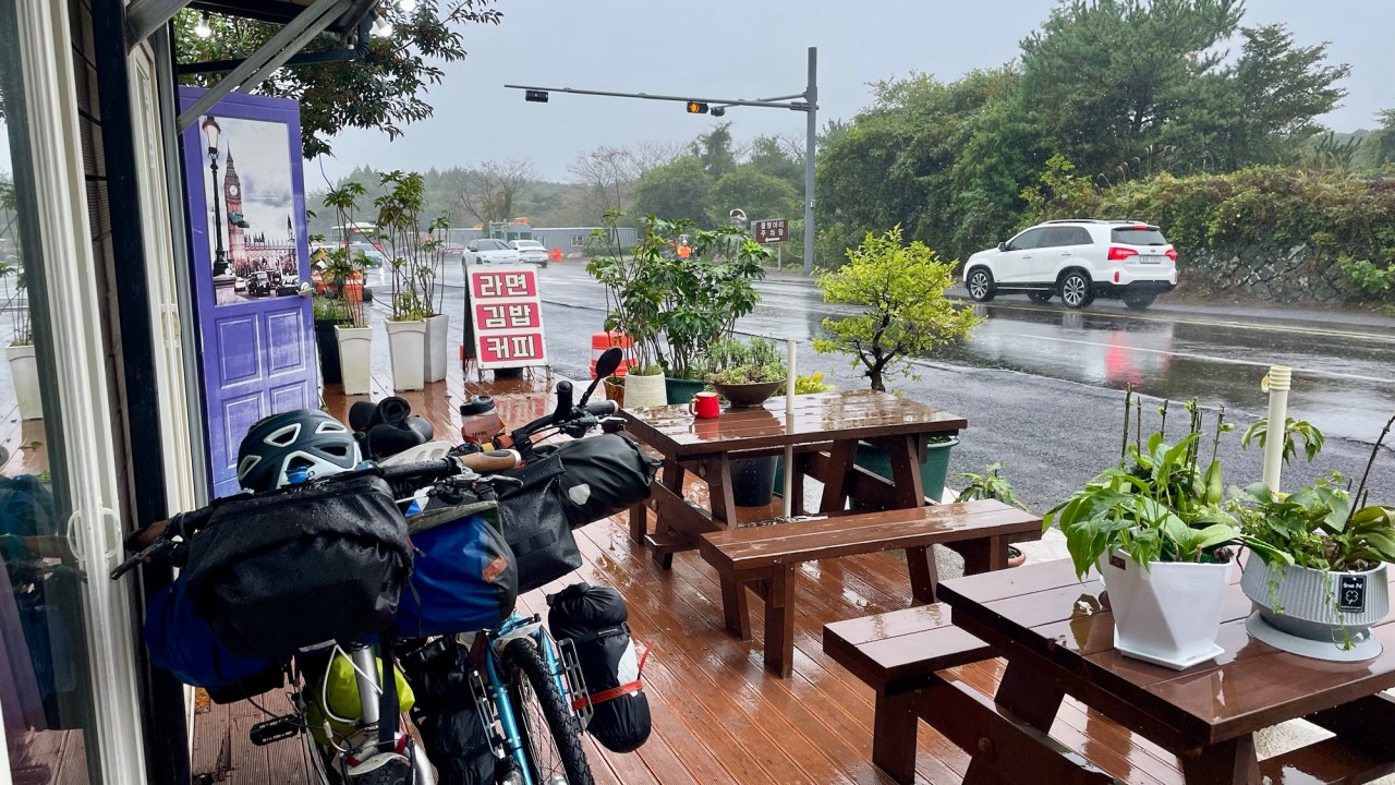 The next morning was wet. Rain had moved in over the island overnight and we had a 50-kilometre ride across the island back to the port of Jeju to take a ferry back to the mainland.