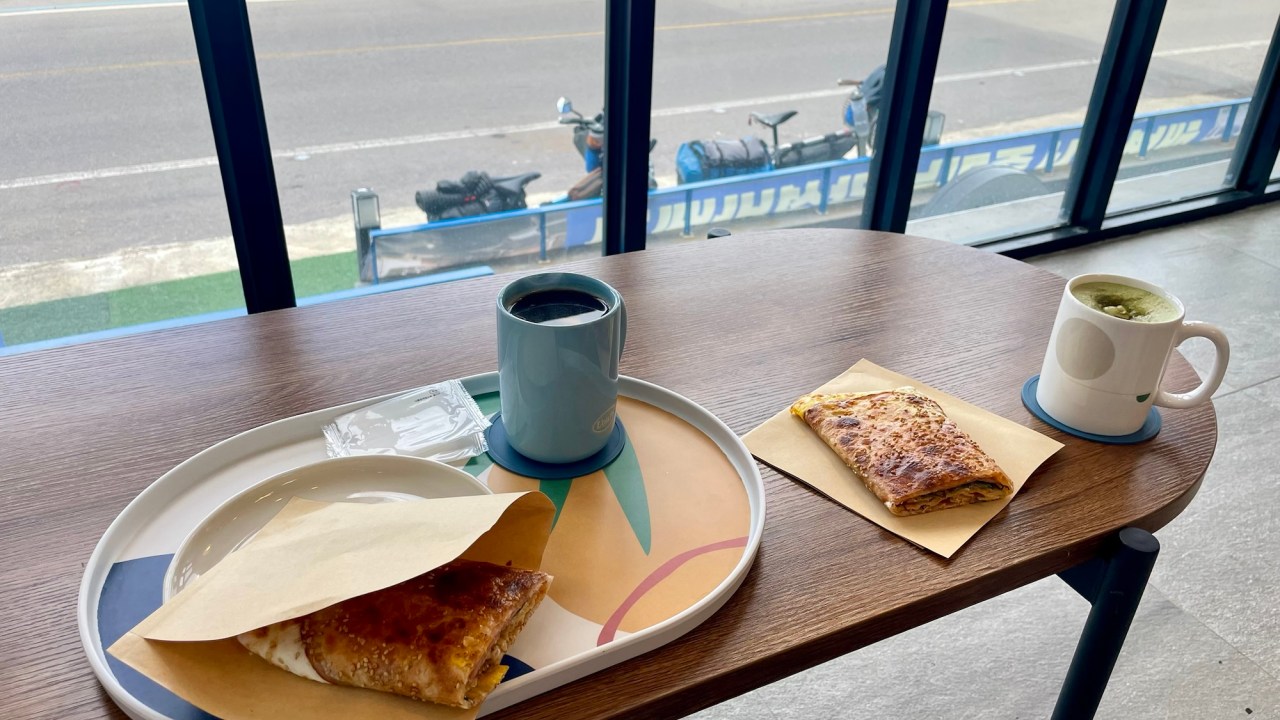By the time we got back down the tour buses had begun to arrive and we were glad about our early start. We had a coffee in yet another gorgeous café and planned our next few days before checking out of our hotel and riding west toward Seogwipo, Jeju’s second largest city on the south-central shore.