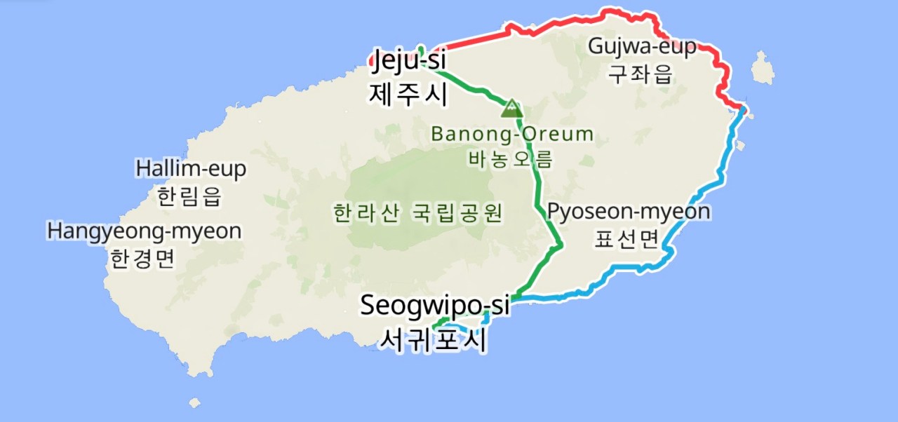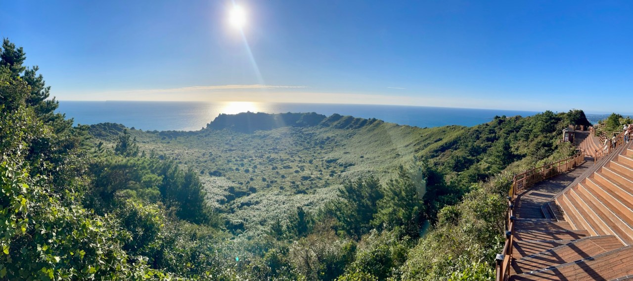 Hallasan, a shield volcano, was formed by an eruption about 100 thousand years ago. It sits nearly smack dab in the middle of the island and can be seen from around the island. It is Koreas’s highest mountain at 1947 m.a.s.l.