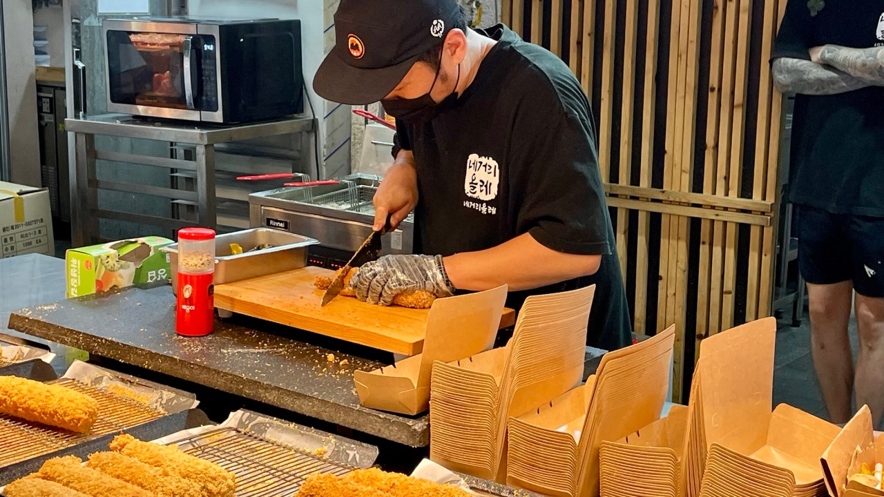 We sampled some dumplings and bought a large pork and spicy noodle roll that was deep fried and took that to a small craft beer joint where we had a drink to wash down the roll.