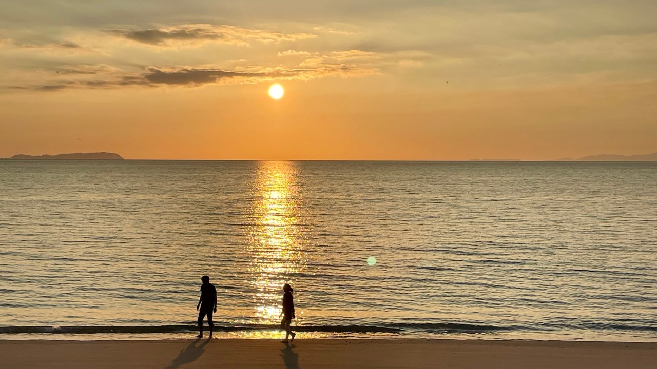 We had our sights on a long beach in a bay north of Akune. We found a suitable spot and headed back up the road to a supermarket to get some supplies, returning just before sunset.