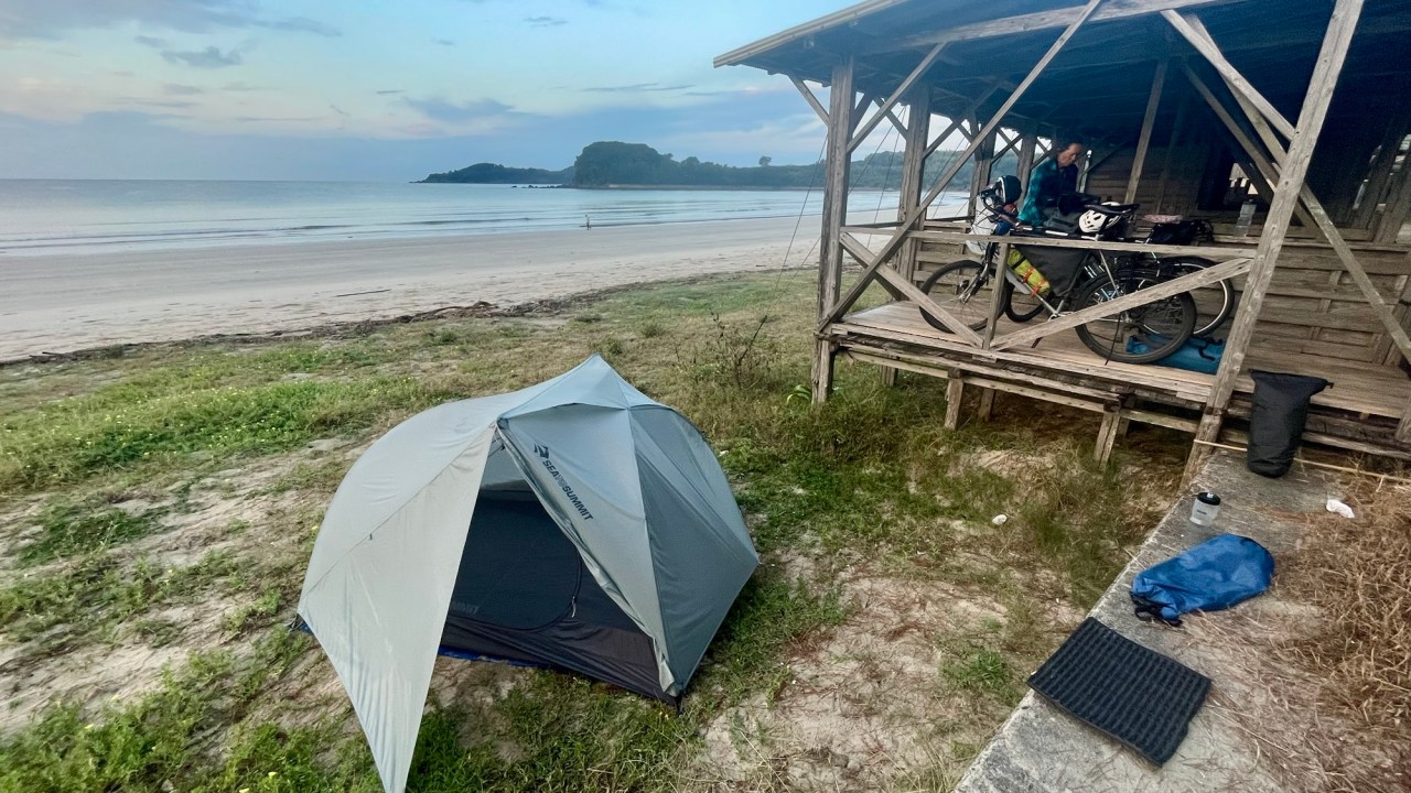 We rode to the nearby supermarket for some dinner stuff and cooked our meal of noodles, veggies and curry sauce by headlamp. It gets dark around 18:00 and it was early to bed as we don’t tend to sit around long after dinner, although the nights are almost as warm as the days with only a few degrees difference.