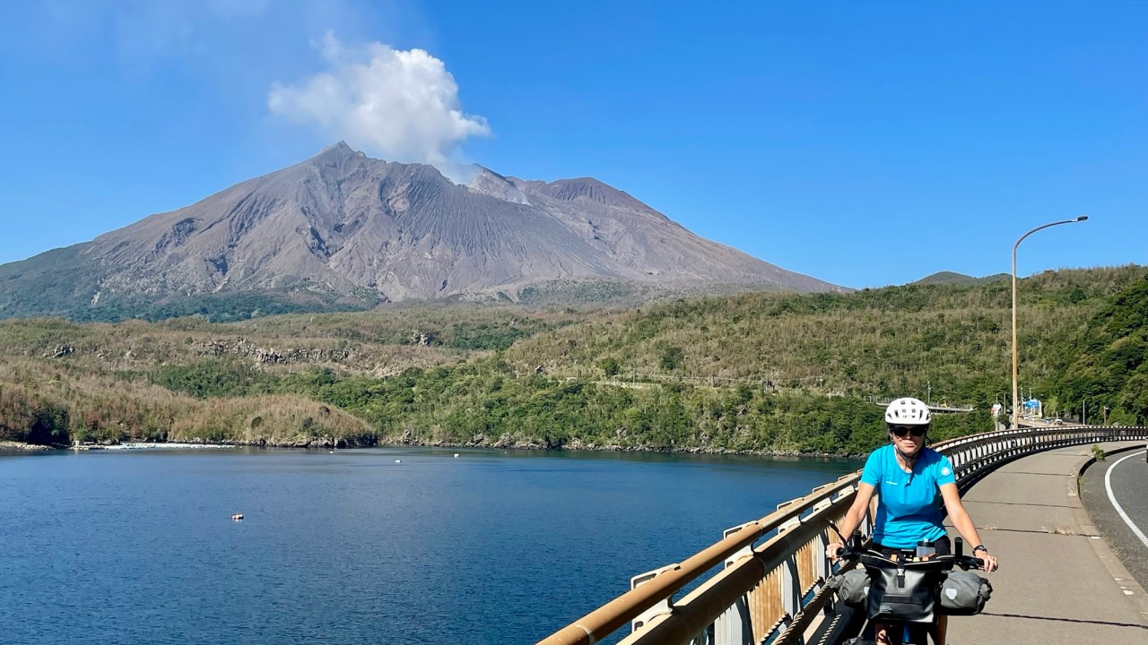 From our room we could see it across the bay, only four kilometres away, venting steam into the orange evening sky. It’s a strata volcano that was formerly an island but a large 1914 eruption connected it to the Ōsumi Peninsula.