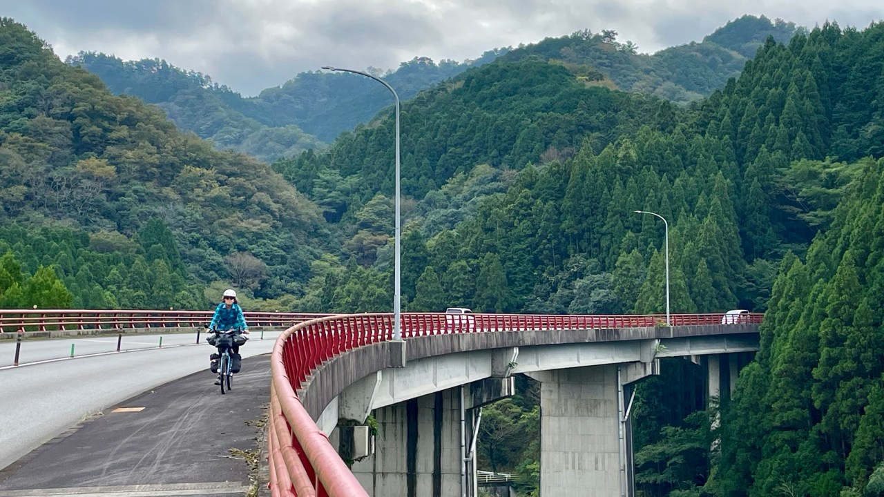 The ride through the Miyazaki valley was very urban. We tried to us small streets but we often had no option but to use a busy road but always on a bike path. It’s just the traffic noise that gets very tiresome.