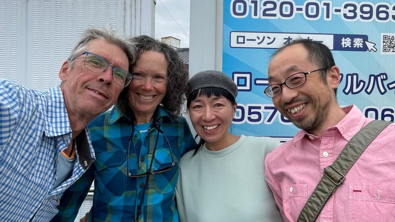 The following morning a van slows down beside us and I hear a voice yelling my name. It’s Junko and her husband, Satoru, heading for Bungo-Ono to shop. We bump into them again in town when we had stopped at a konbini for a coffee.