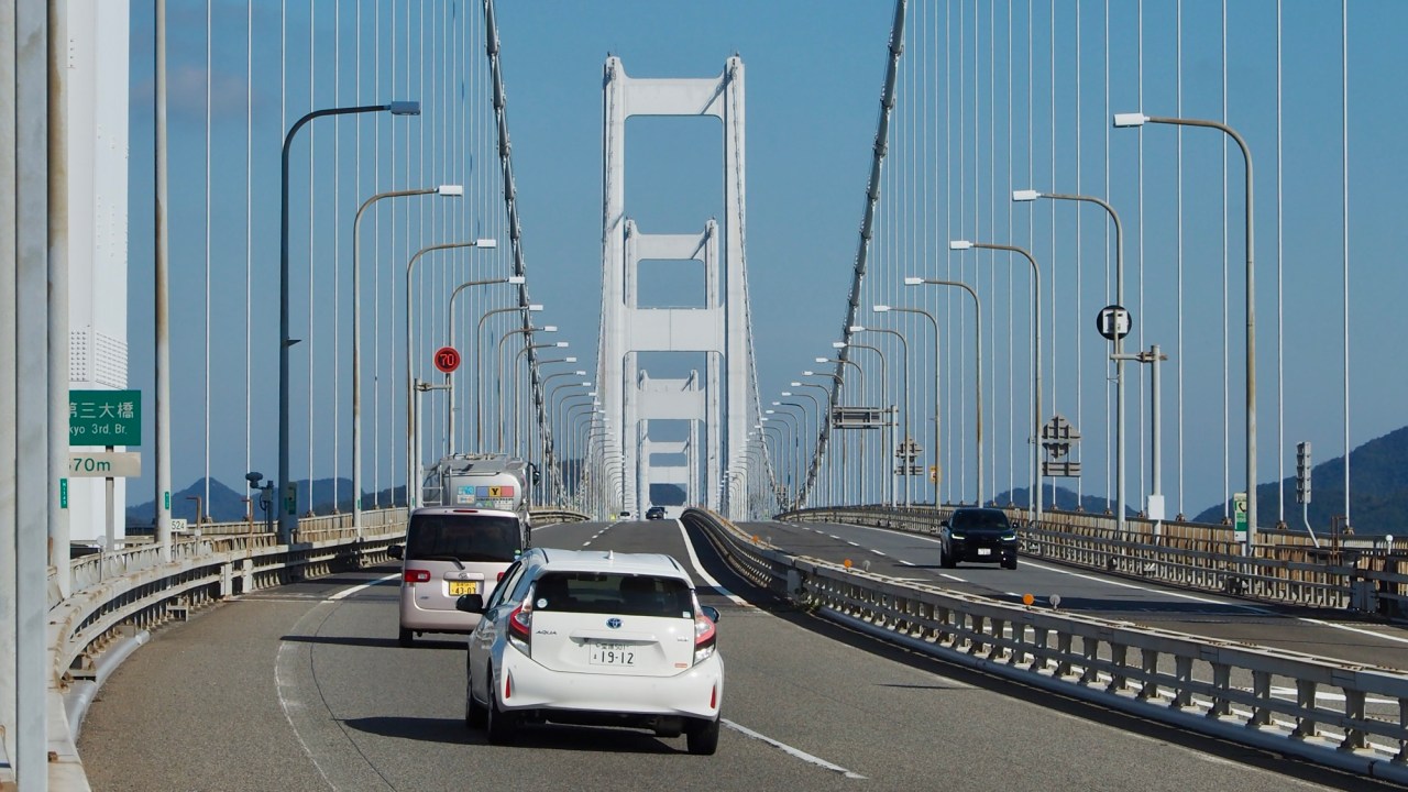 We cross two more bridges to reach the shores of Honshu, Japan’s largest and most populous island. Time is fleeting and we have a plan for the final part of our journey.
