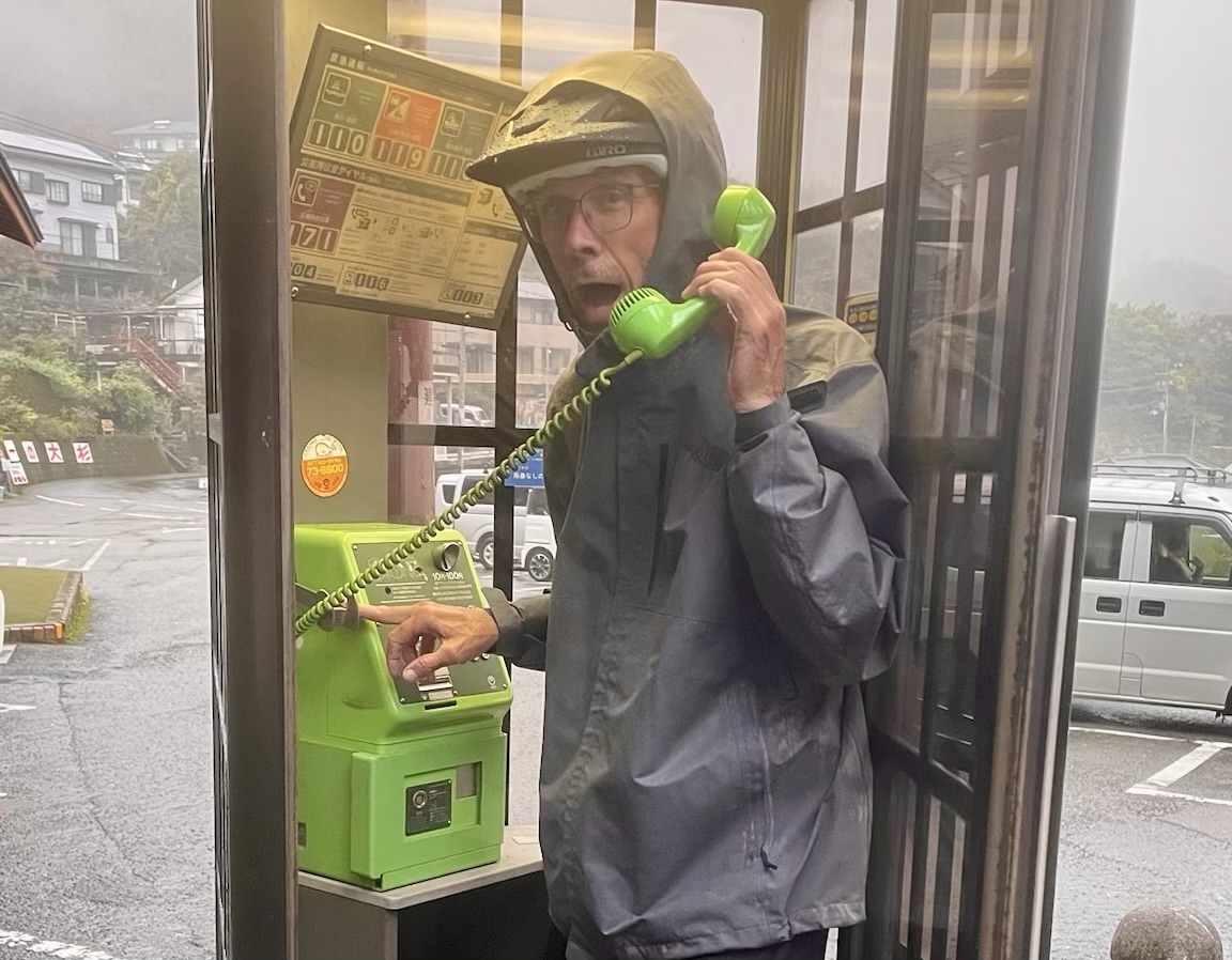 It’s a wet ride as the rain continues to fall. We take a short break in the waiting room of a small train station. We eat the rest of our bread and boiled eggs. Unfortunately, there is no vending machine. We had hoped for a hot coffee. This must be the only train station in Japan without a vending machine.
