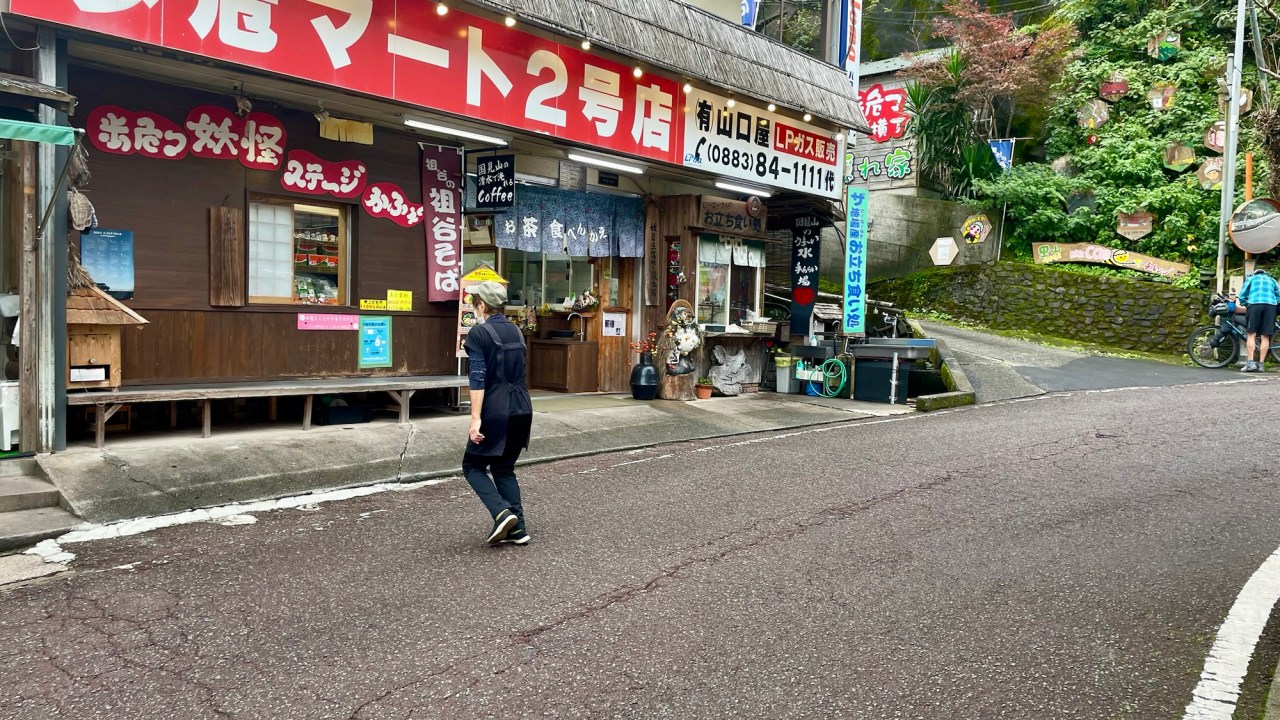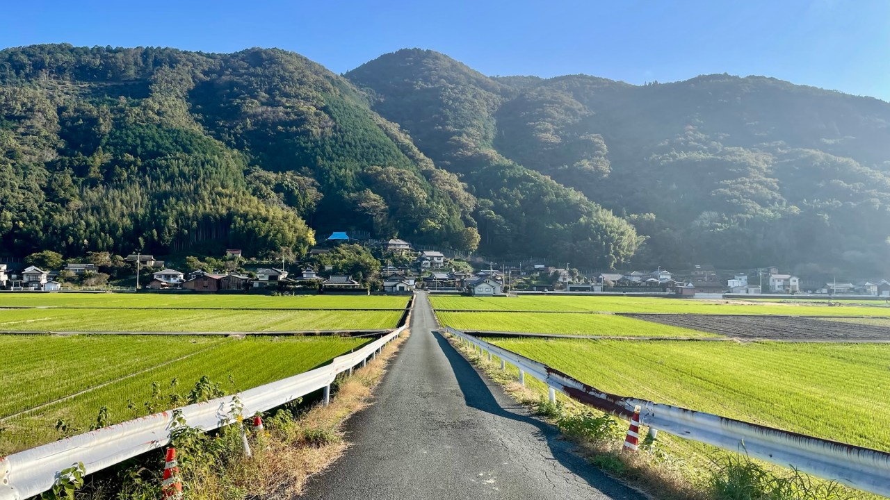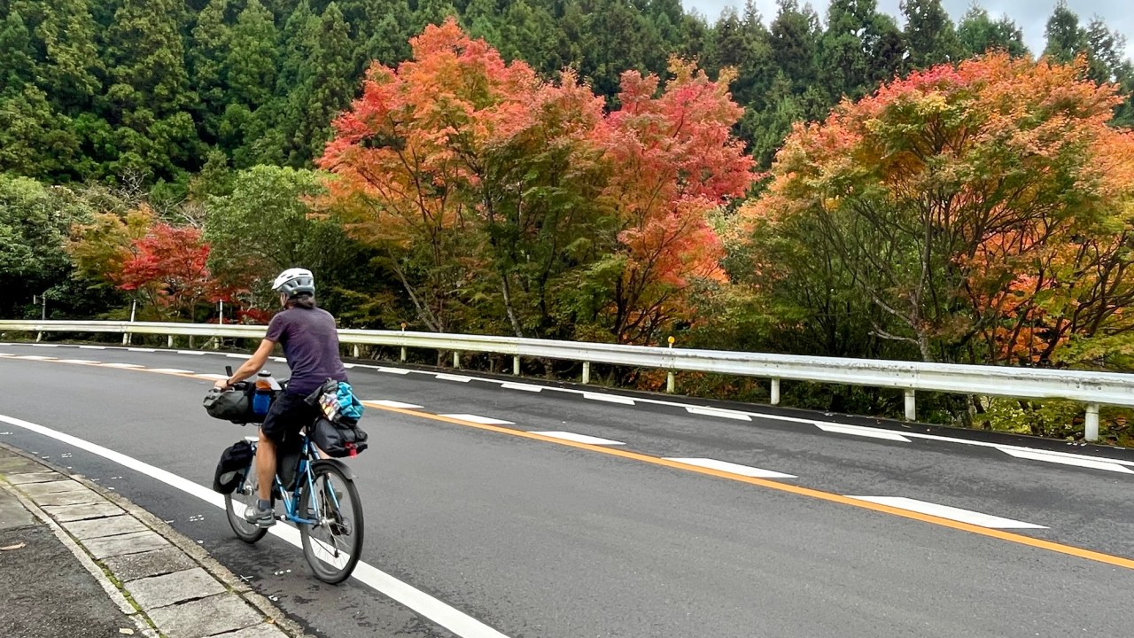 We have a short 25-kilometre ride into the Iya Valley but it comes with a good climb as we have to traverse a mountain range to drop into the valley west of Oboke. It’s quiet on the road and, as usual, there’s a tunnel through the mountain near the summit of the climb. The downhill into the Iya Valley is exhilarating.