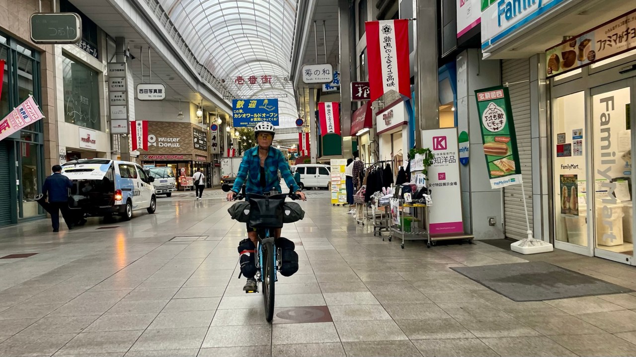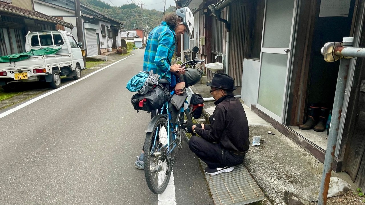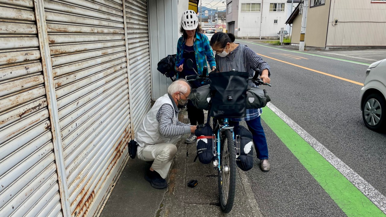 In Susaki we go to the first bike shop but they can’t help us. The second bike shop is stocked with bikes and some parts but we don’t see any pedals. They won’t sell us a pair from one of the many new bikes in the store.