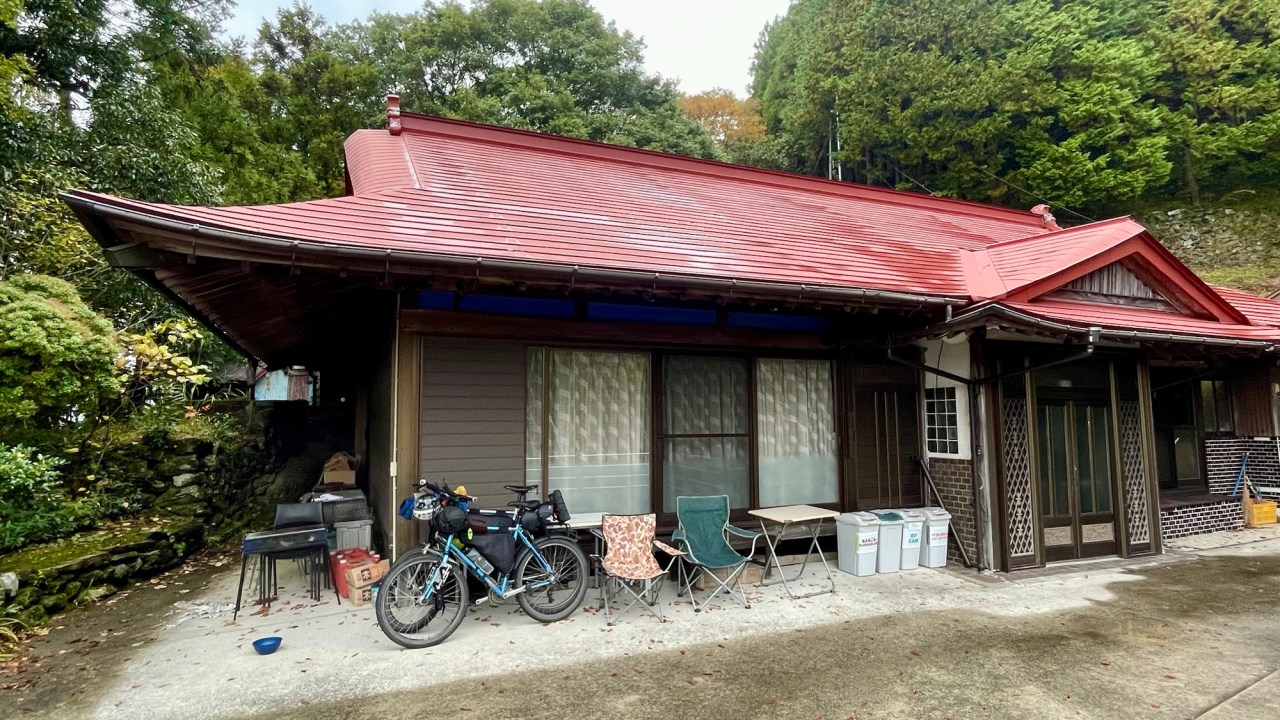 We climb steadily all day but at a fairly easily gradient. When we get to Yusuhara, we decide to call it a day. There is a place called the Riders’ Inn, catering to motorcyclists and cyclists. Each room has a bike garage by the entrance and we love the vibe.