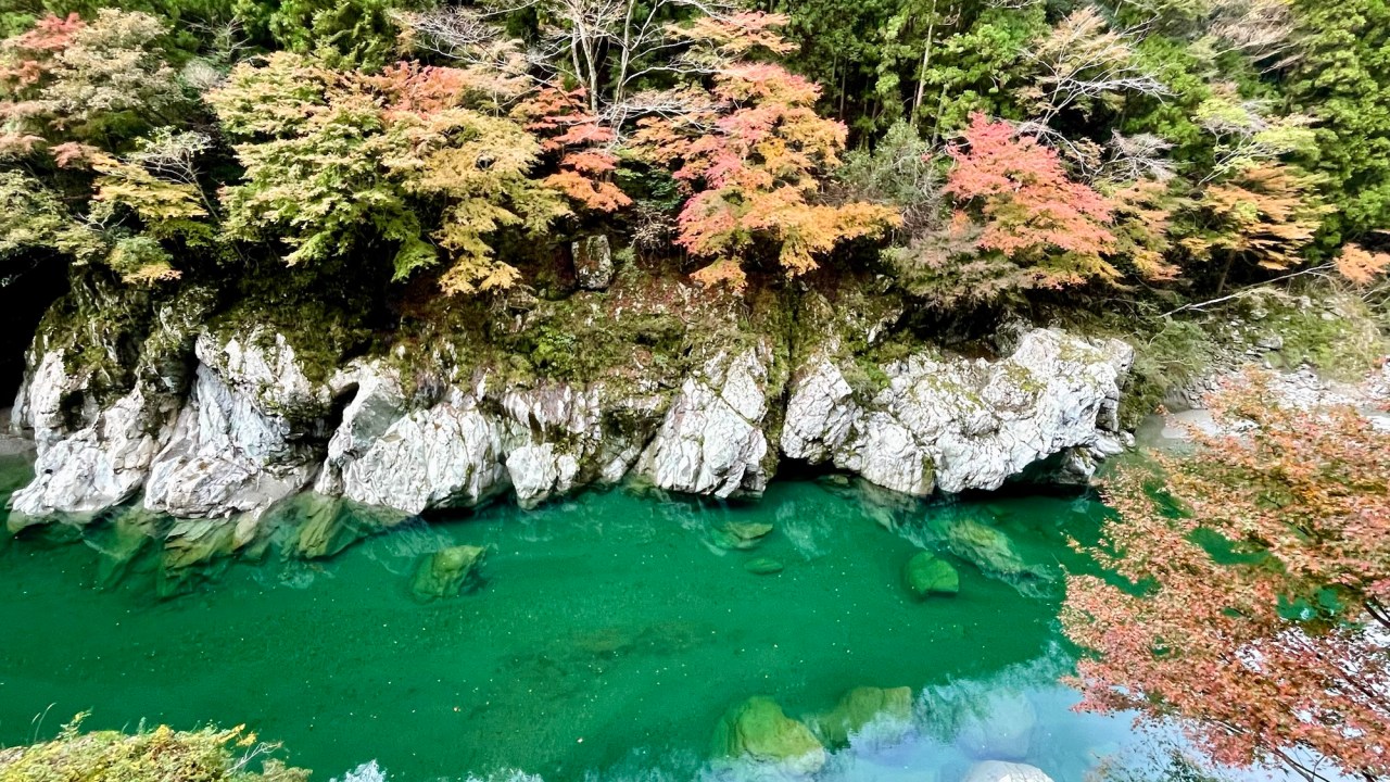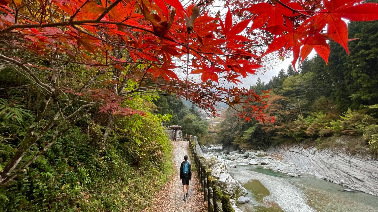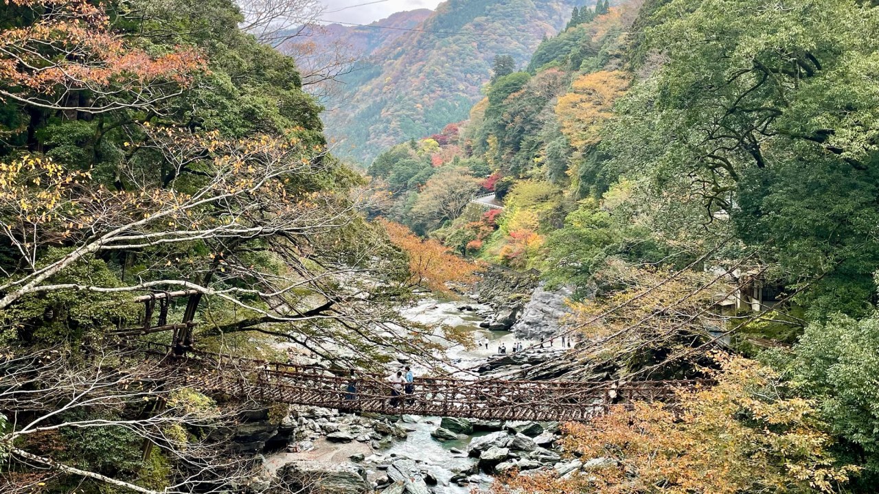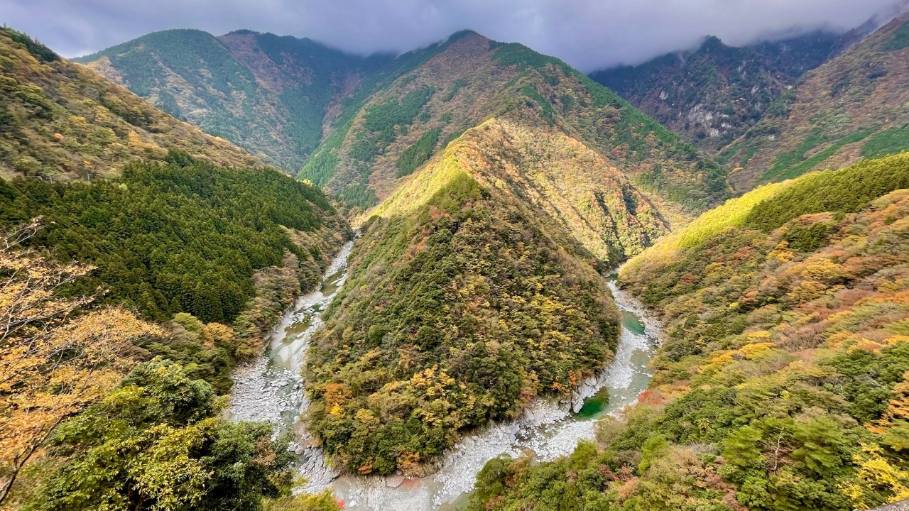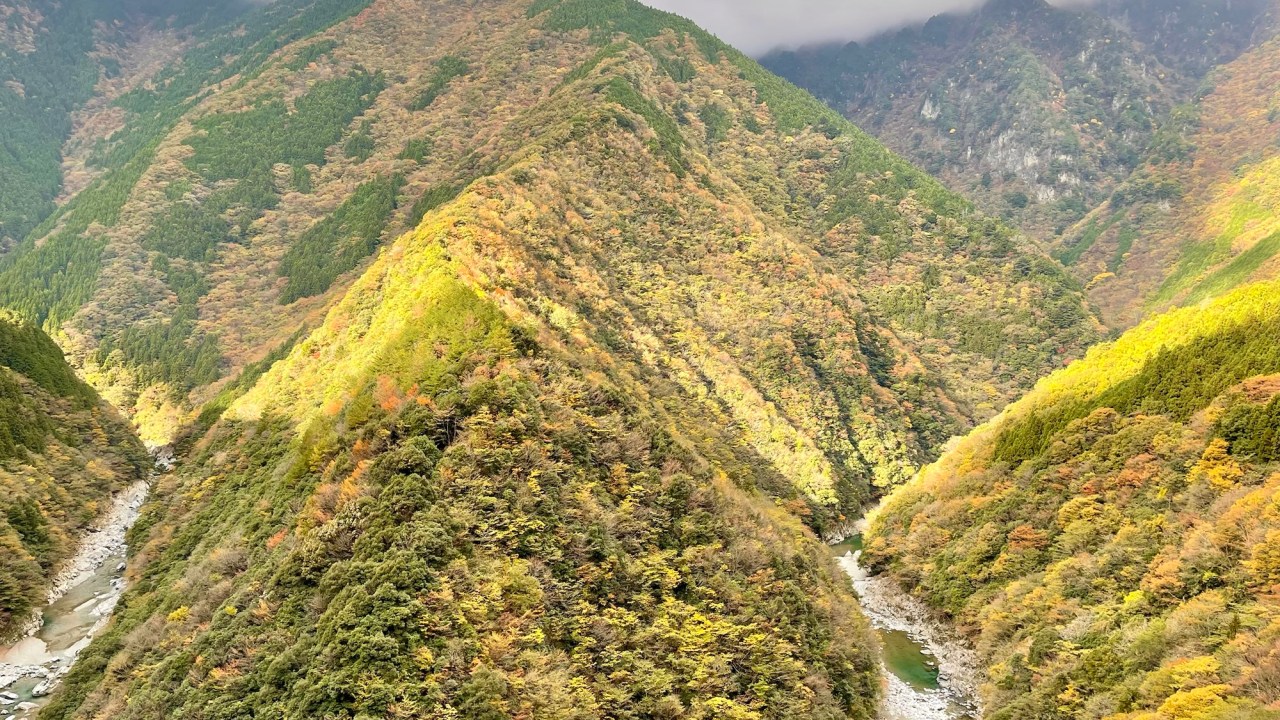 The ride is spectacular as we follow the Iya River north. There are beautiful mountain vistas from the little road with nearly no other traffic. The view of the Hinoji Valley is truly one of the most beautiful things we’ve seen here. Sunlight breaks through the clouds as the light rolls over the landscape highlighting the reds and yellows of fall in a sea of green. I’m awestruck.