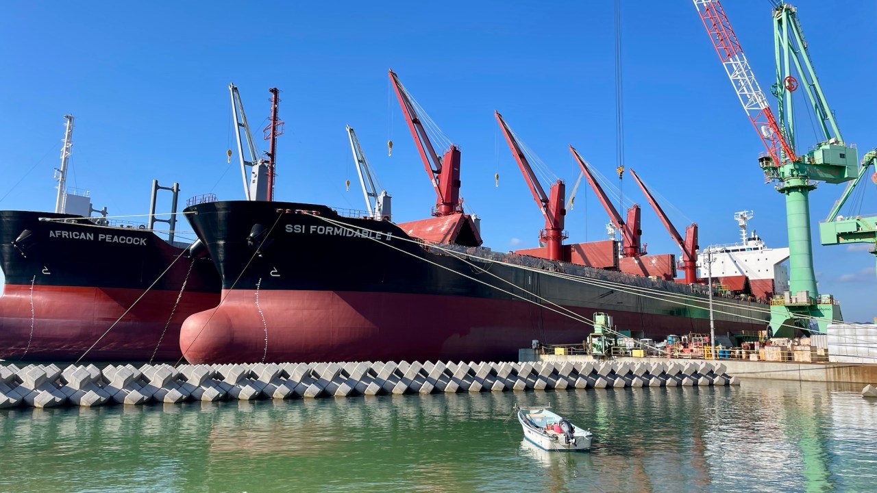 At the other end, on Ōshima Island, we descend a similar spiral ramp and a switchback road to the beach and we ride along the coast of the island past huge ship yards where ships are being repaired and new ones built.